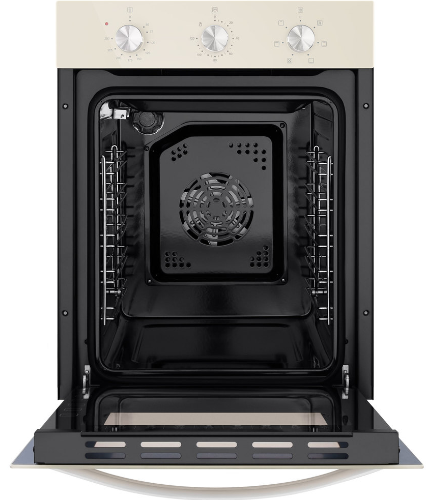 i Предполагает наличие встроенного вентилятора, который обеспечивает равномерное запекание благодаря непрерывной циркуляции горячего воздуха.
