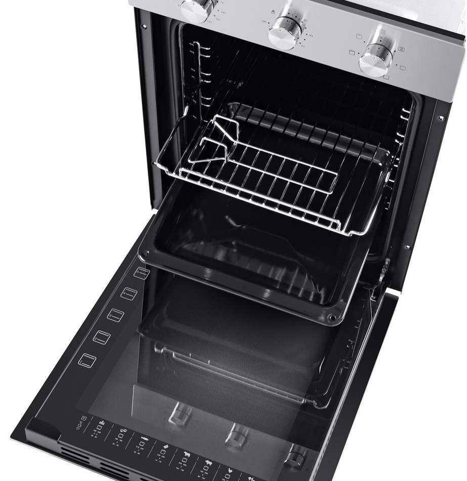 i У духового шкафа может быть газовый или электрический тип питания. Газовые духовки экономичнее, а электрические имеют больше режимов работы.