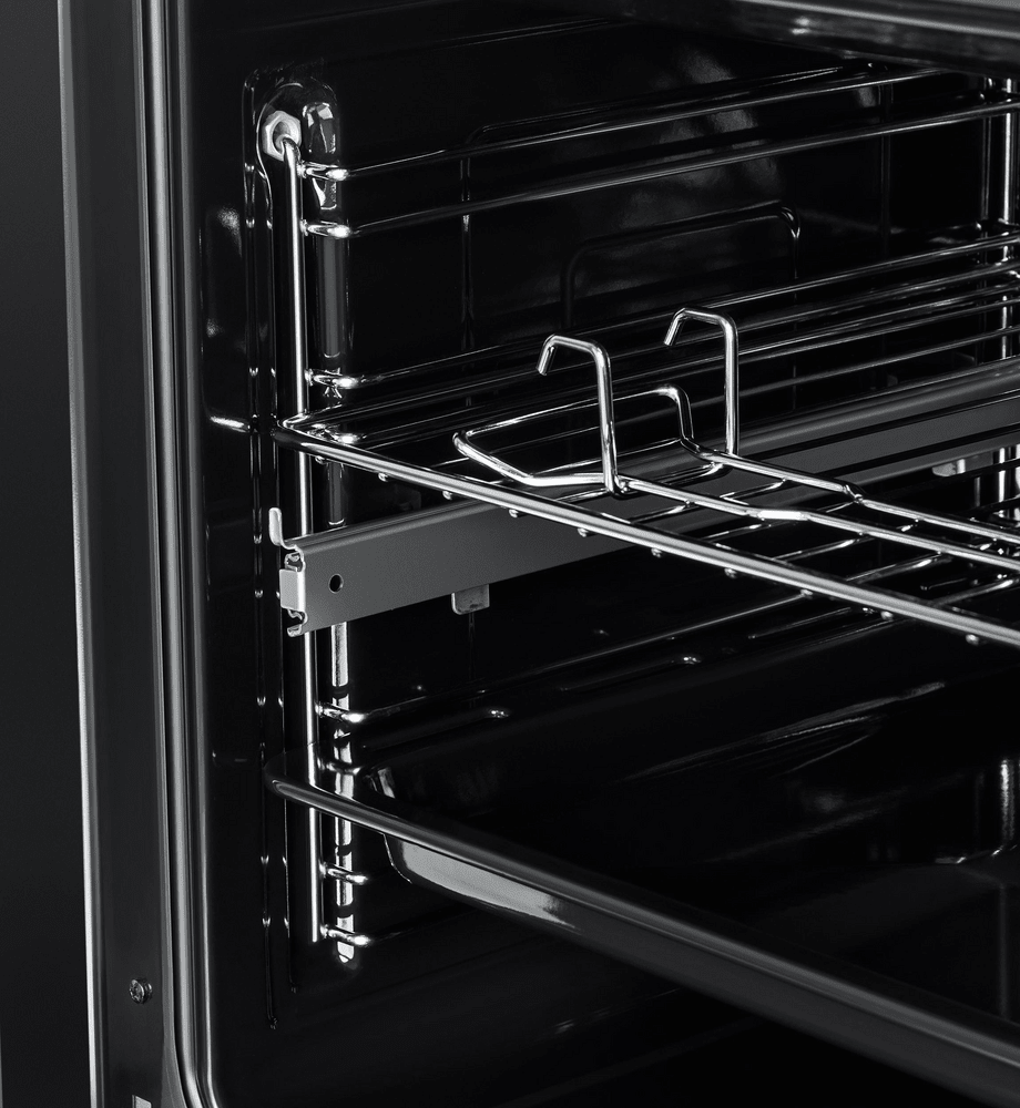 i Выдвижные металлические полозья, которые легко выезжают за пределы камеры духовки вместе с противнем, не давая ему упасть.
