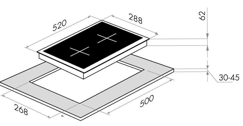 i На варочной поверхности может быть от 2 до 8 электрических конфорок с индукционным нагревом. Для них нужна специальная посуда.