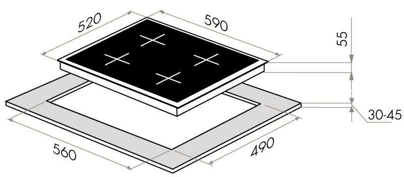 i На варочной поверхности может быть от 2 до 8 электрических конфорок с индукционным нагревом. Для них нужна специальная посуда.