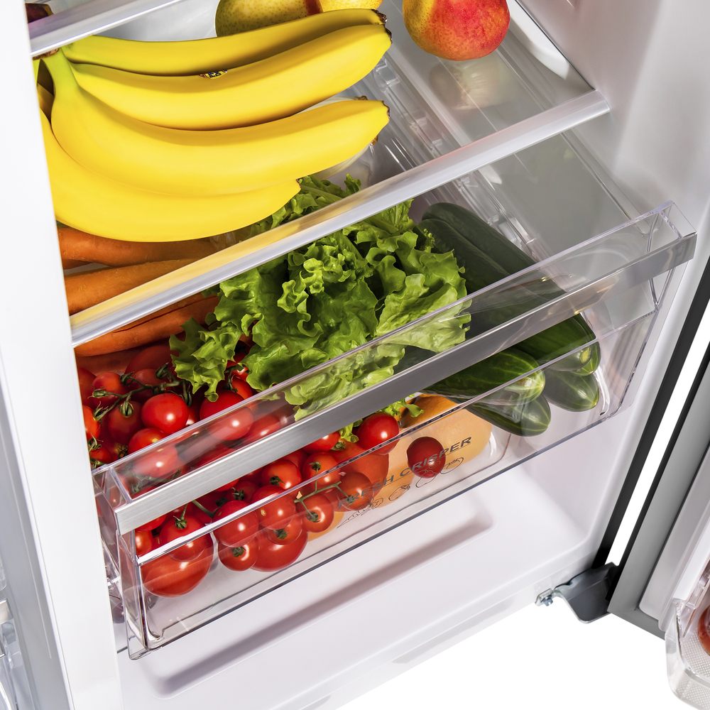 i В зоне свежести температура держится на уровне 0°С, так продукты дольше остаются свежими. Подходит для свежего мяса, рыбы, фруктов, овощей.