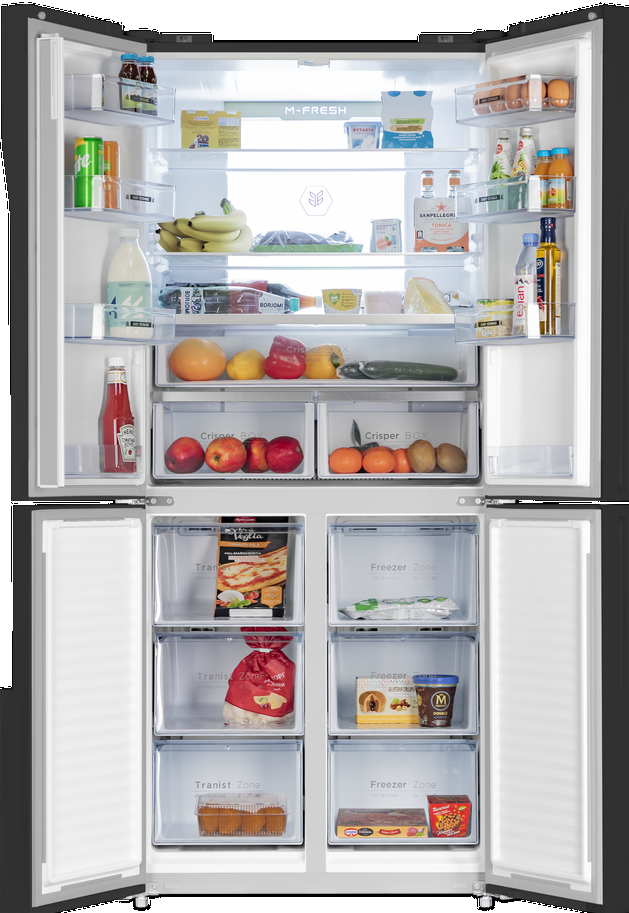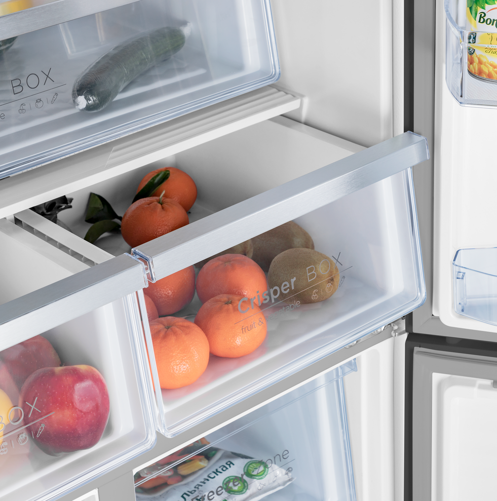 i В зоне свежести температура держится на уровне 0°С, так продукты дольше остаются свежими. Подходит для свежего мяса, рыбы, фруктов, овощей.