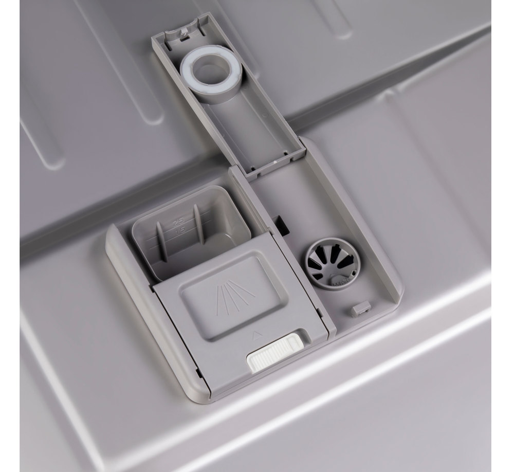 i Возможно использование специальных таблеток 3в1, включающих моющее средство, ополаскиватель и соль для смягчения воды. Это быстро и удобно.