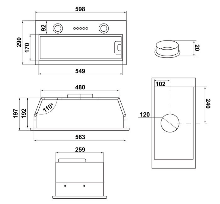Maunfeld THAMES 601M BLACK встраиваемая вытяжка для шкафа