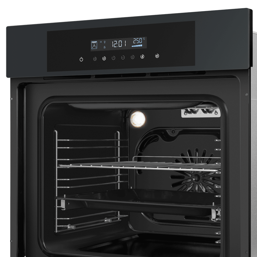 i Предполагает наличие встроенного вентилятора, который обеспечивает равномерное запекание благодаря непрерывной циркуляции горячего воздуха.