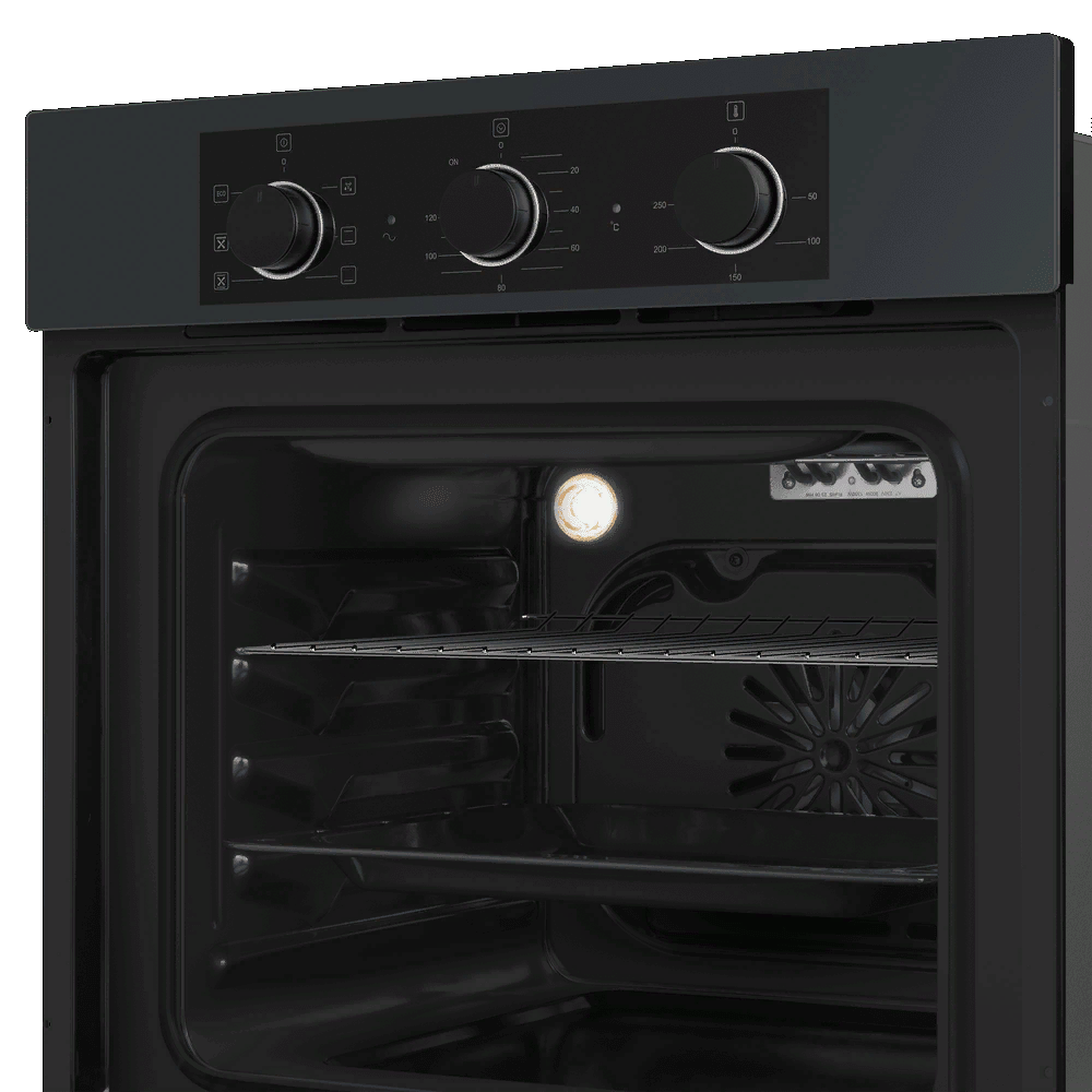 i Предполагает наличие встроенного вентилятора, который обеспечивает равномерное запекание благодаря непрерывной циркуляции горячего воздуха.