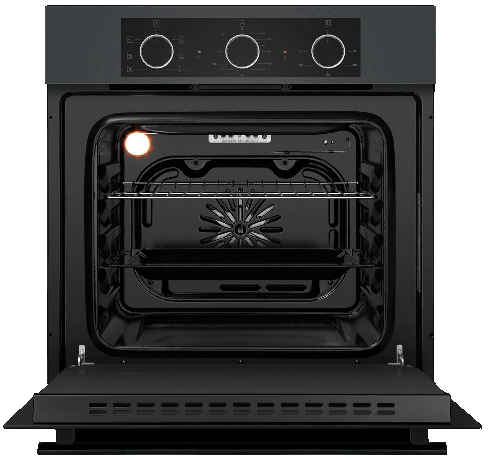 i У духового шкафа может быть газовый или электрический тип питания. Газовые духовки экономичнее, а электрические имеют больше режимов работы.