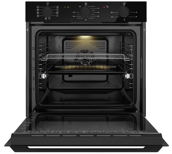 i У духового шкафа может быть газовый или электрический тип питания. Газовые духовки экономичнее, а электрические имеют больше режимов работы.