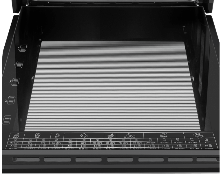 i Предполагает наличие встроенного вентилятора, который обеспечивает равномерное запекание благодаря непрерывной циркуляции горячего воздуха.