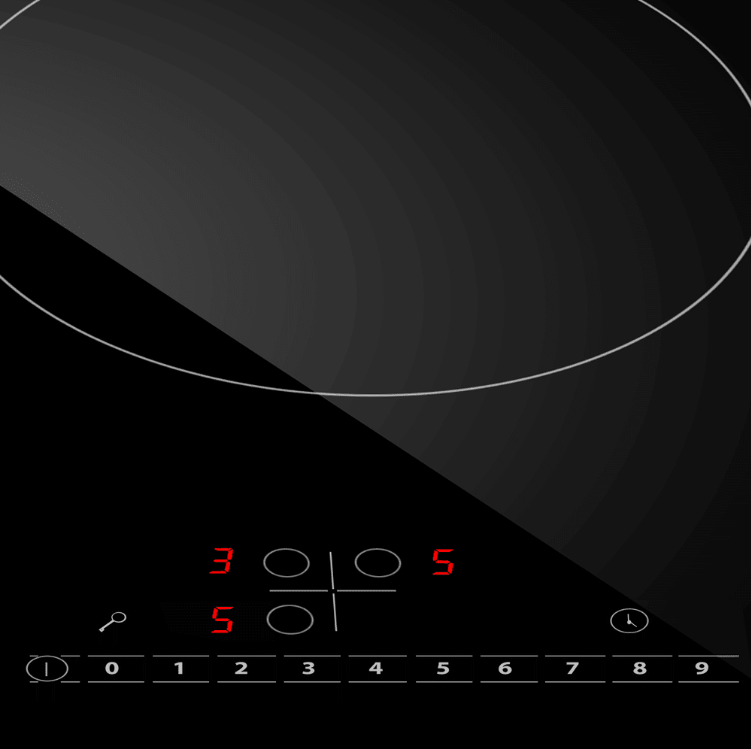 i Расположение панели управления варочной поверхностью относительно конфорок. Если панель расположена сбоку, она будет справа.