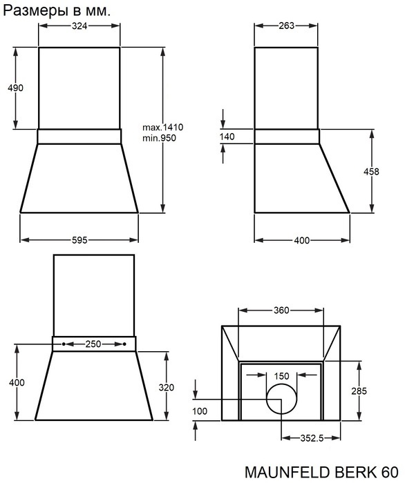 Maunfeld BERK 60 Black/Anthracite вытяжка пристенная