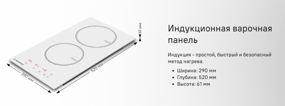 i На варочной поверхности может быть от 2 до 8 электрических конфорок с индукционным нагревом. Для них нужна специальная посуда.
