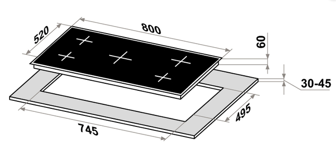 i На варочной поверхности может быть от 2 до 8 электрических конфорок с индукционным нагревом. Для них нужна специальная посуда.
