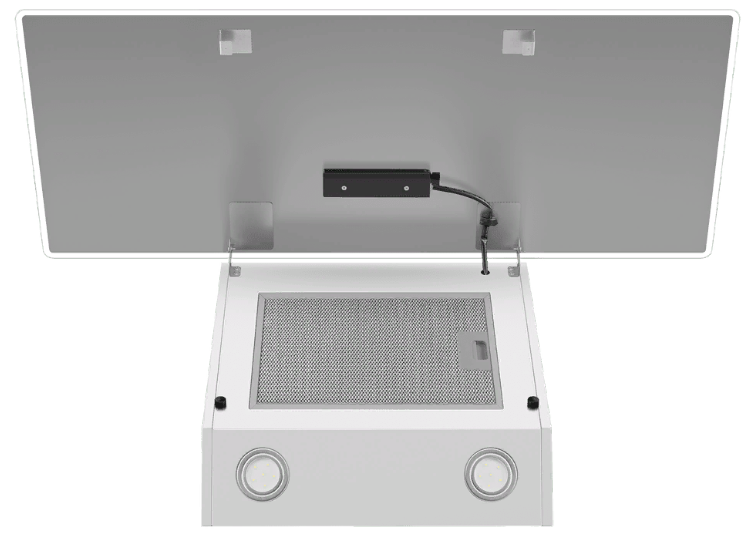 i Большинство вытяжек оснащены лампами, направленными на варочную панель. От типа лампы зависит энергопотребление и особенности освещения.