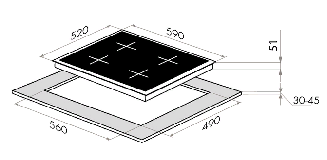 i На варочной поверхности может быть от 2 до 8 электрических конфорок с индукционным нагревом. Для них нужна специальная посуда.