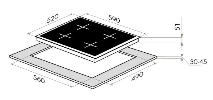 i На варочной поверхности может быть от 2 до 8 электрических конфорок с индукционным нагревом. Для них нужна специальная посуда.