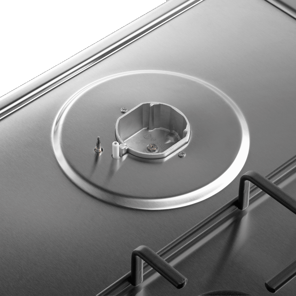 i Система безопасности в газовых плитах, варочных поверхностях и варочных центрах. Если пламя гаснет, подача газа прекращается автоматически.
