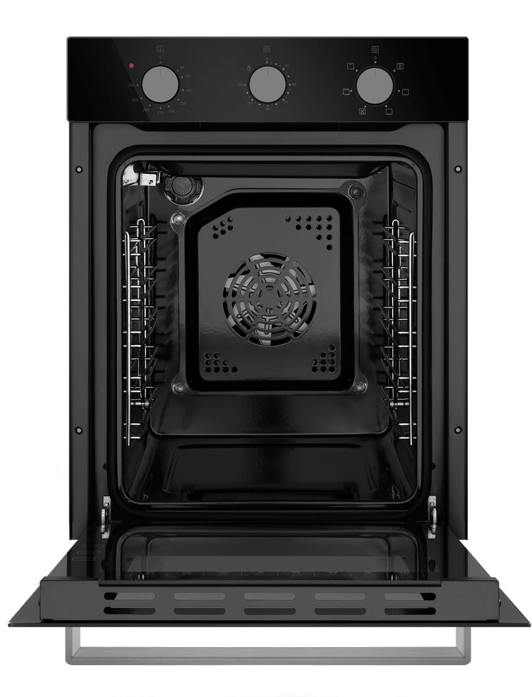 i Предполагает наличие встроенного вентилятора, который обеспечивает равномерное запекание благодаря непрерывной циркуляции горячего воздуха.