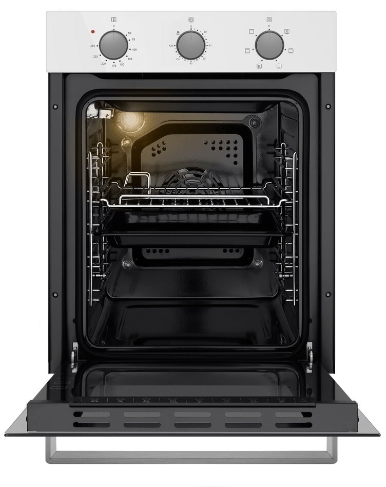 i У духового шкафа может быть газовый или электрический тип питания. Газовые духовки экономичнее, а электрические имеют больше режимов работы.