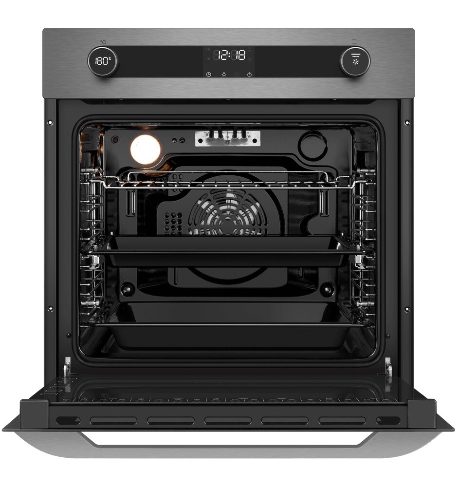 i Предполагает наличие встроенного вентилятора, который обеспечивает равномерное запекание благодаря непрерывной циркуляции горячего воздуха.