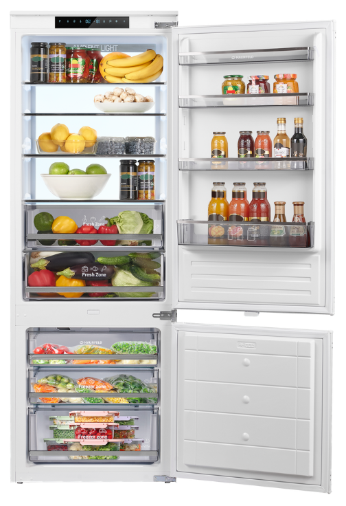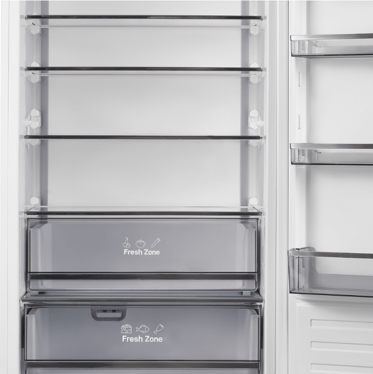 i В зоне свежести температура держится на уровне 0°С, так продукты дольше остаются свежими. Подходит для свежего мяса, рыбы, фруктов, овощей.