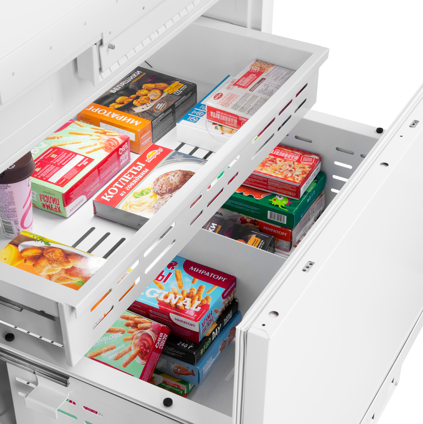 i В зоне свежести температура держится на уровне 0°С, так продукты дольше остаются свежими. Подходит для свежего мяса, рыбы, фруктов, овощей.