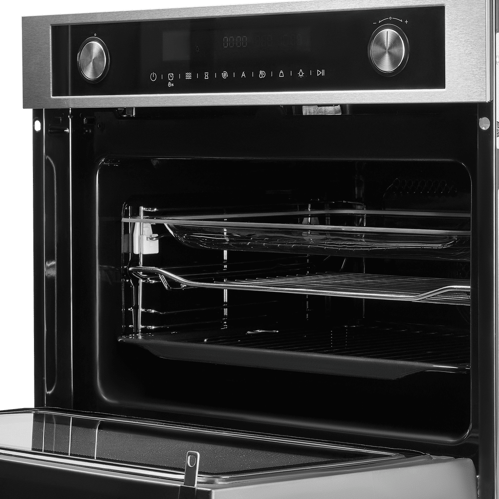 i У духового шкафа может быть газовый или электрический тип питания. Газовые духовки экономичнее, а электрические имеют больше режимов работы.