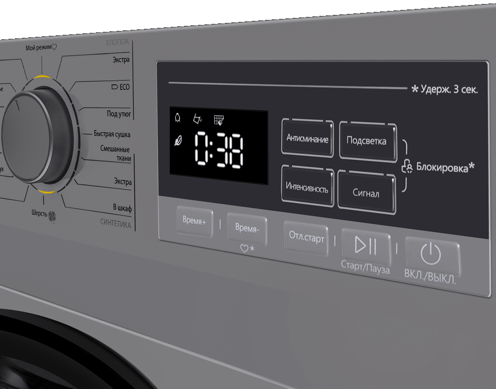 i Встроенная в барабан подсветка позволяет лучше контролировать процесс загрузки белья и вовремя убрать неподходящую вещь.