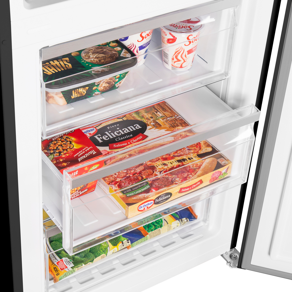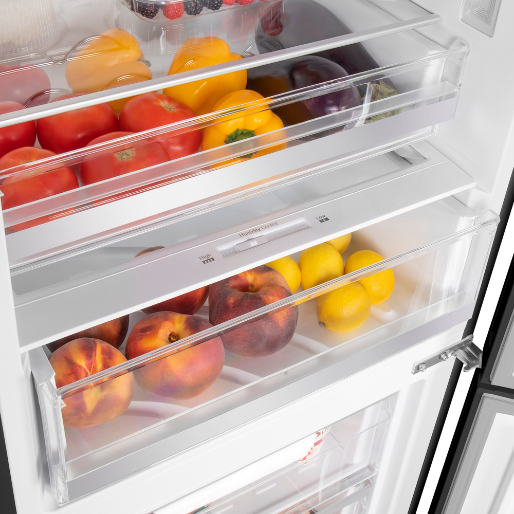 i В зоне свежести температура держится на уровне 0°С, так продукты дольше остаются свежими. Подходит для свежего мяса, рыбы, фруктов, овощей.