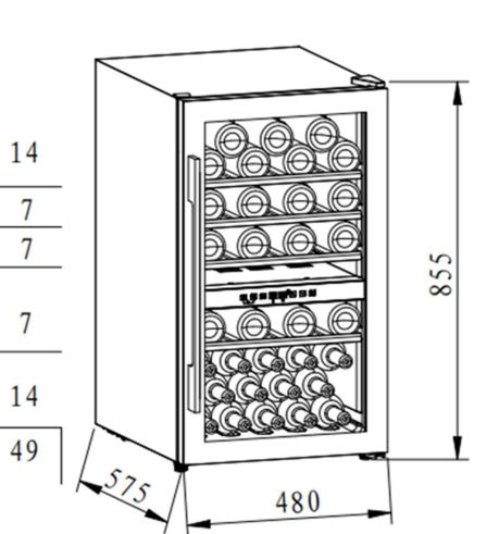 i Вместимость или емкость винного шкафа определяется количеством установленных в нем ячеек для бутылок со стандартным объемом 0,75 л.