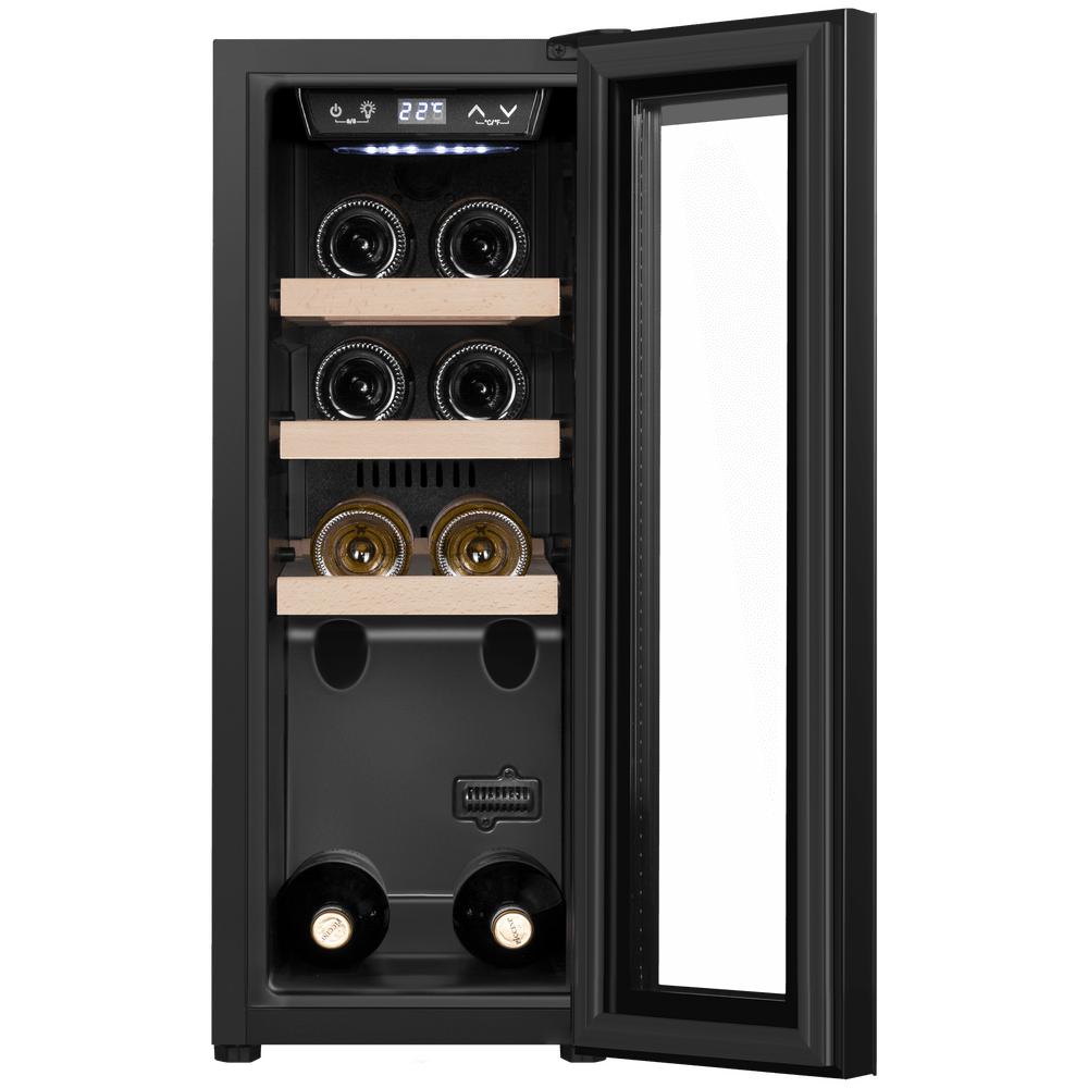 i Вместимость или емкость винного шкафа определяется количеством установленных в нем ячеек для бутылок со стандартным объемом 0,75 л.