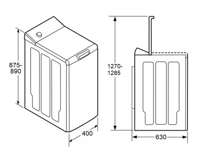 i Отверстие для загрузки белья может располагаться спереди (фронтальная загрузка) или сверху (вертикальная загрузка).