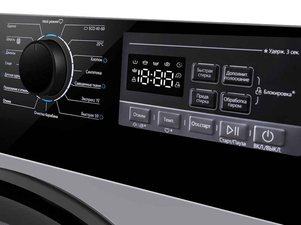 i Функция подачи пара из парогенератора в барабан позволит разгладить вещи после стирки, обработать их от бактерий, вирусов и аллергенов.