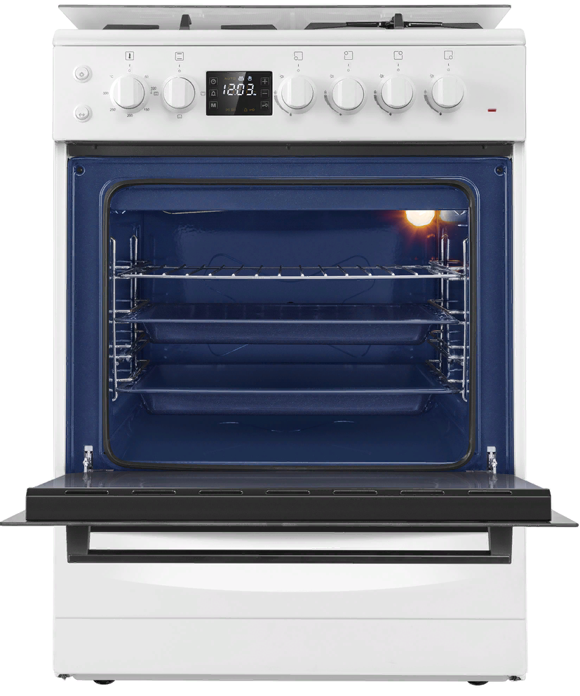 i У духового шкафа может быть газовый или электрический тип питания. Газовые духовки экономичнее, а электрические имеют больше режимов работы.