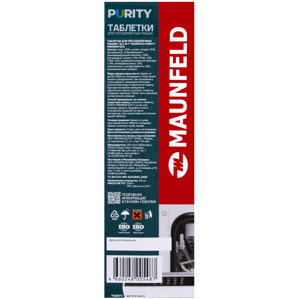 Maunfeld таблетки для посудомоечных машин MDT100ST