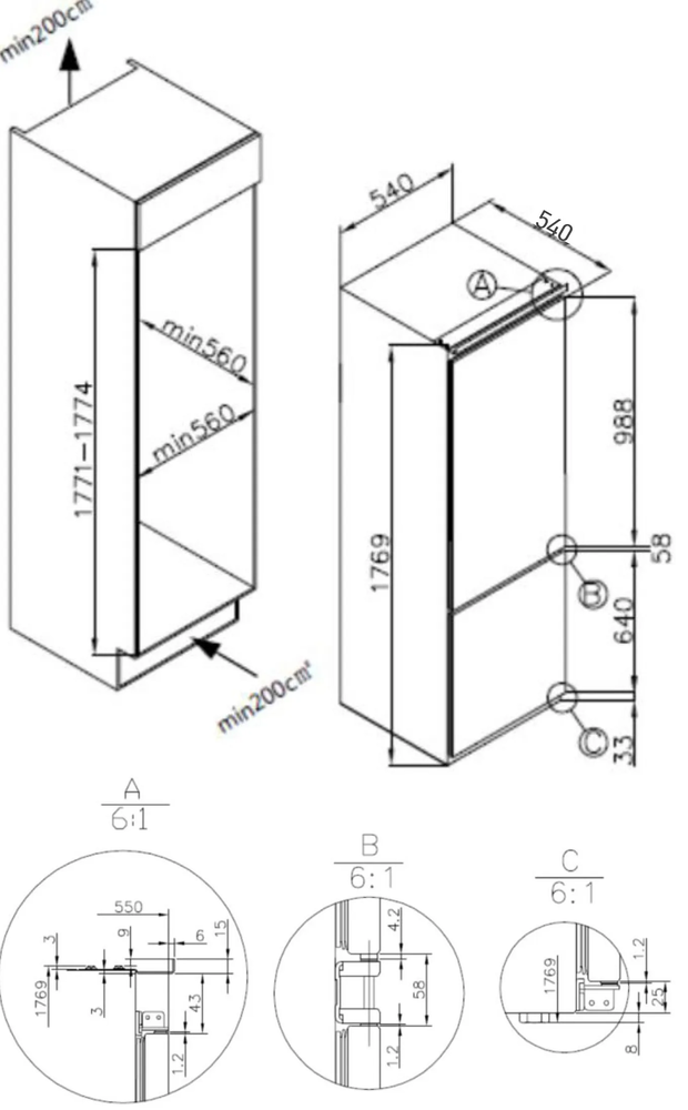 MEFERI MBR177 LOW FROST LIGHT двухкамерный холодильник встраиваемый