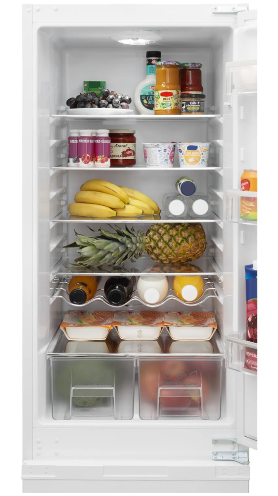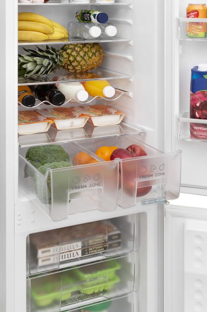 i В зоне свежести температура держится на уровне 0°С, так продукты дольше остаются свежими. Подходит для свежего мяса, рыбы, фруктов, овощей.