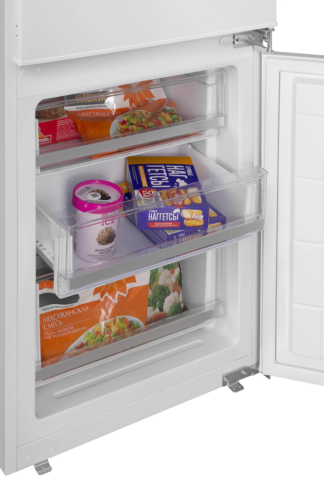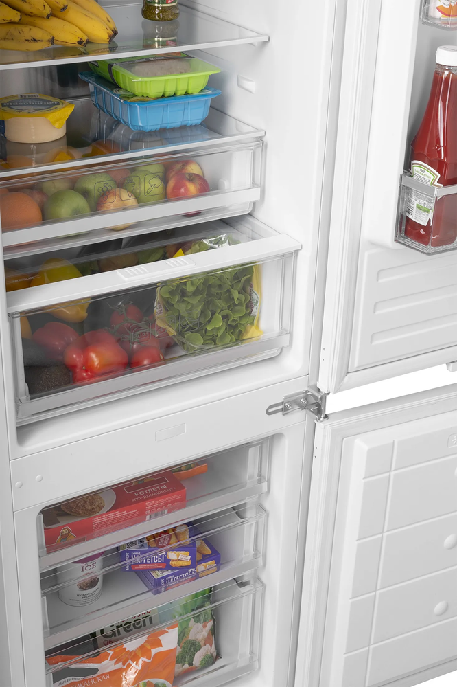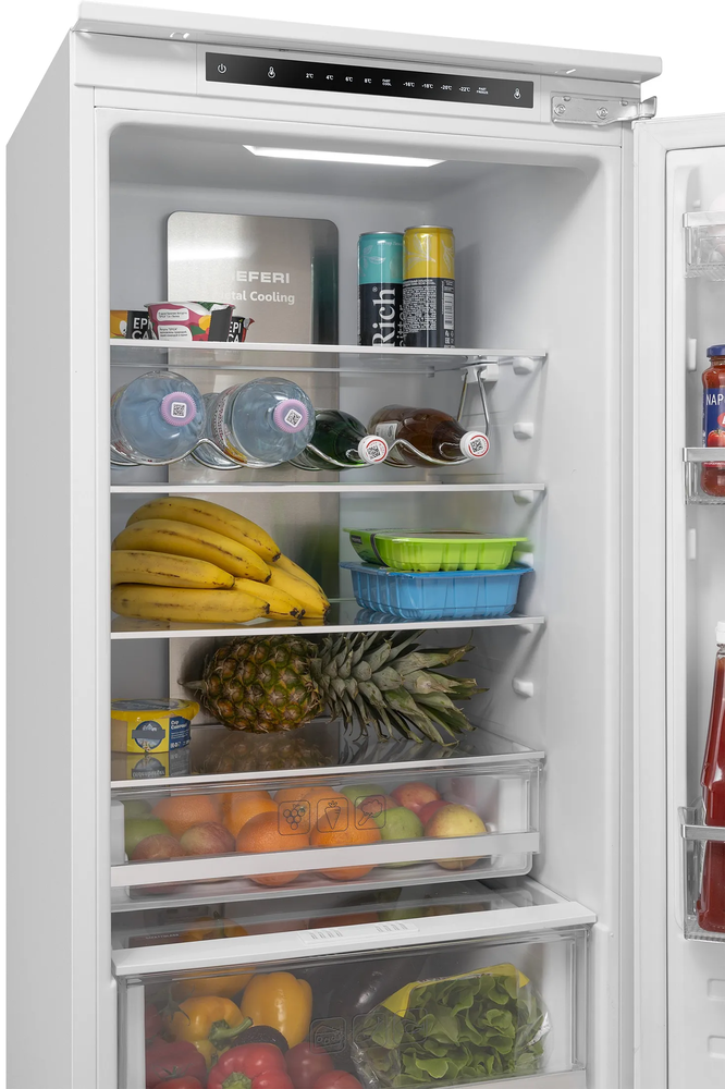 i В зоне свежести температура держится на уровне 0°С, так продукты дольше остаются свежими. Подходит для свежего мяса, рыбы, фруктов, овощей.