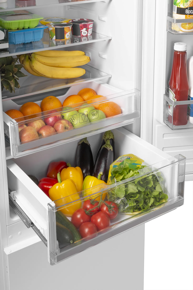 i В зоне свежести температура держится на уровне 0°С, так продукты дольше остаются свежими. Подходит для свежего мяса, рыбы, фруктов, овощей.