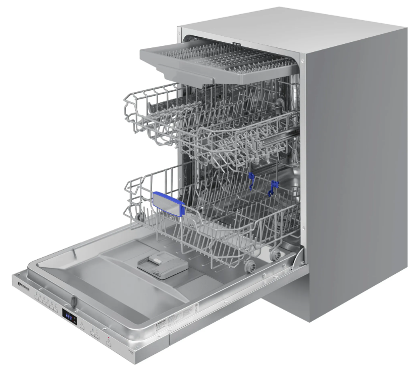 i В стандартной посудомоечной машине 3 корзины — 2 для посуды и 1 для столовых приборов. Современные модели могут иметь от 1 до 4 корзин.