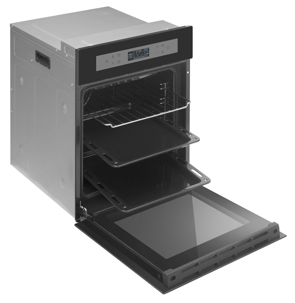 i Предполагает наличие встроенного вентилятора, который обеспечивает равномерное запекание благодаря непрерывной циркуляции горячего воздуха.