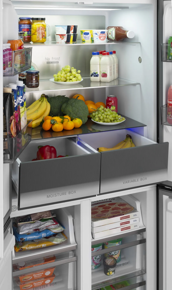 i В зоне свежести температура держится на уровне 0°С, так продукты дольше остаются свежими. Подходит для свежего мяса, рыбы, фруктов, овощей.