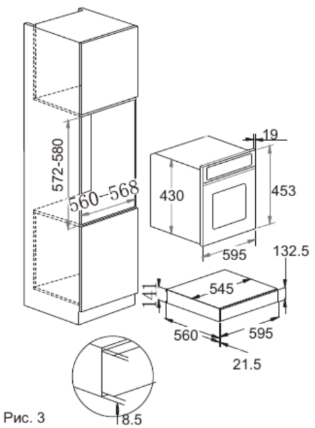 i Глубина корпуса товара. Учитывайте глубину при подборе встраиваемой техники, крупной и мелкой бытовой техники и т.д.