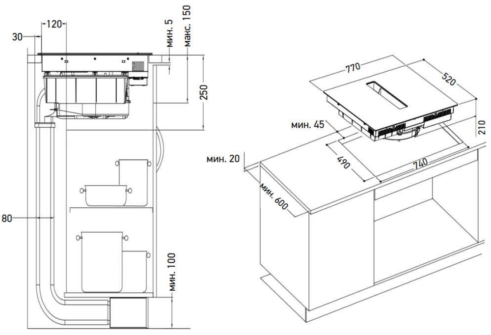 i Модели со встроенной вытяжкой подходят для компактных кухонь. Запахи, пар и дым от готовки полностью поглощаются встроенной вытяжкой.