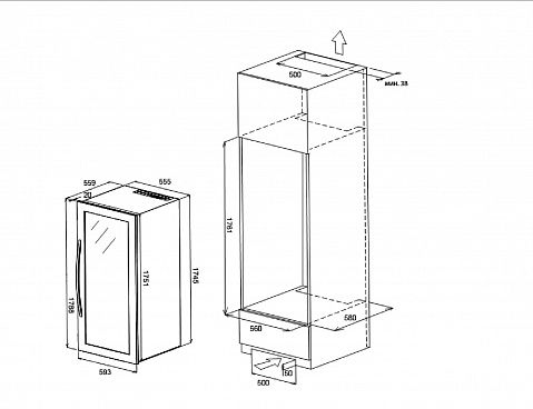 i Вместимость или емкость винного шкафа определяется количеством установленных в нем ячеек для бутылок со стандартным объемом 0,75 л.