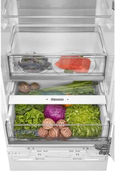i В зоне свежести температура держится на уровне 0°С, так продукты дольше остаются свежими. Подходит для свежего мяса, рыбы, фруктов, овощей.