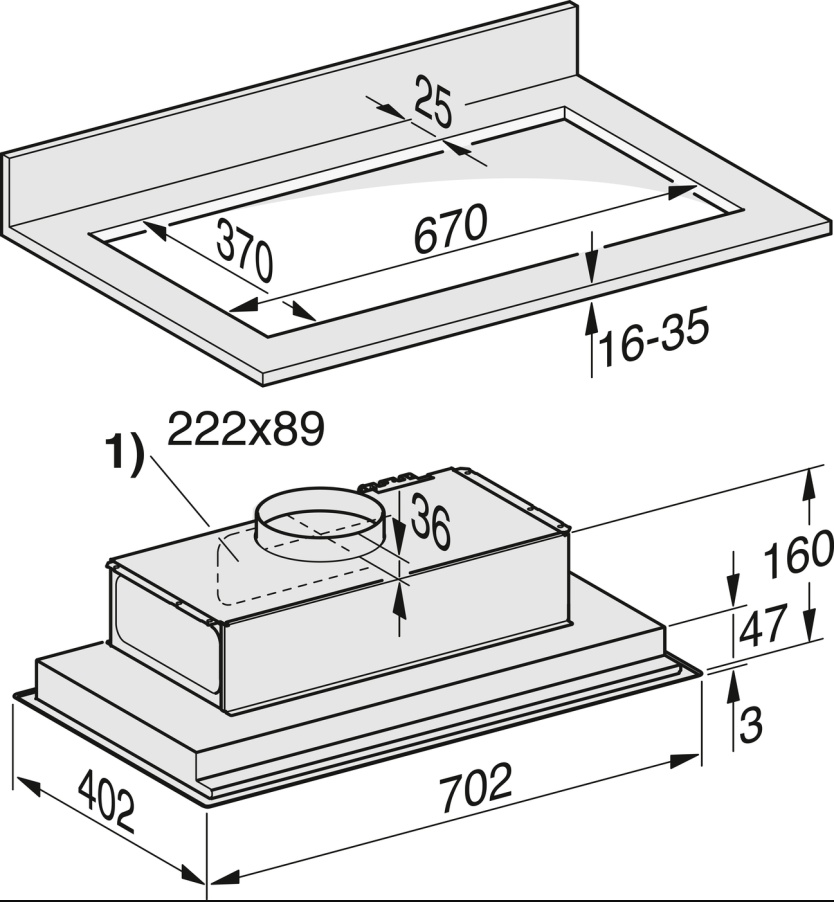 Miele DA2668 встраиваемая вытяжка для шкафа