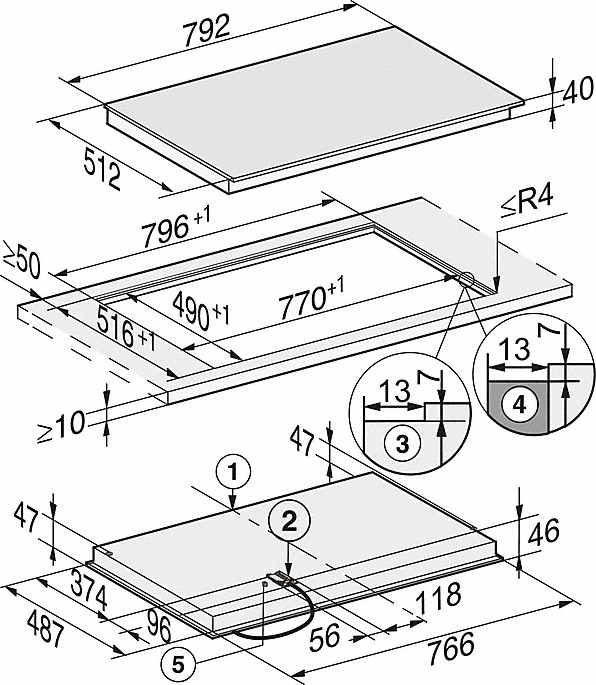 i Характер огранки фаски на внешней стороне варочной панели. Металлические рамки предотвращают забивание монтажных швов крошками и пылью.