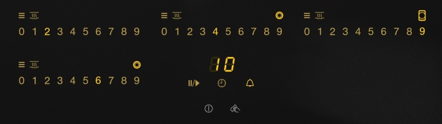 i Расположение панели управления варочной поверхностью относительно конфорок. Если панель расположена сбоку, она будет справа.